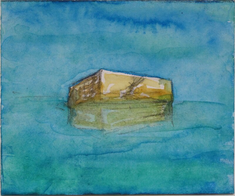 CASAMATTA di Tano Giuffrida. Dipinto ad acquerello su sandwich di carta, cm 9,4x7,8 con